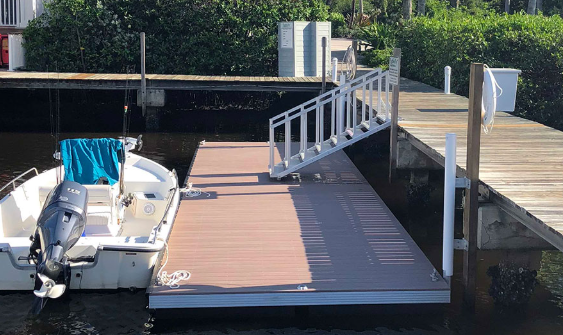 - A floating dock is a great option for properties that have fluctuating water levels.